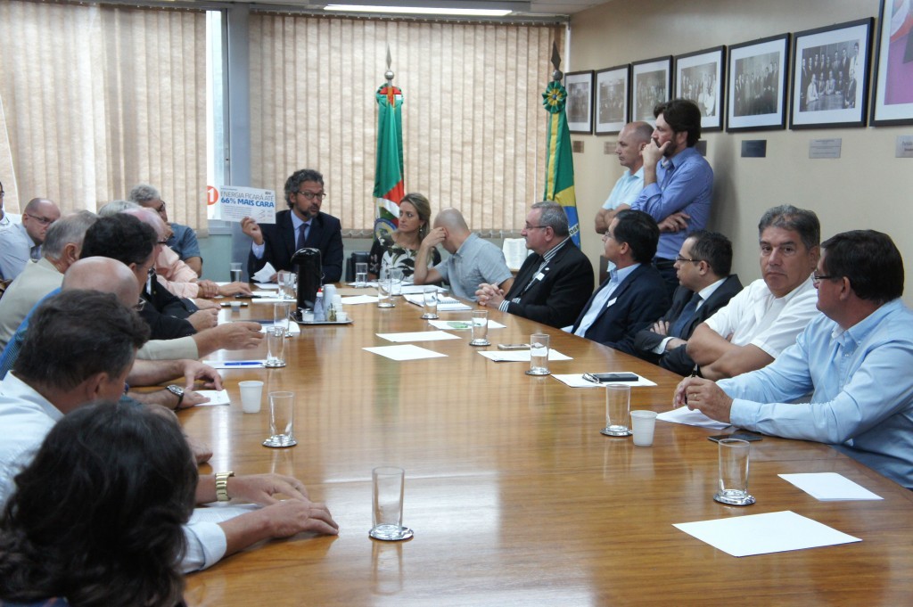 Uma equipe de Santa Maria, formada pela diretoria da CDL Santa Maria, incluindo o presidente Jacques Eskenazi, participa da reunião em prol do lojista.